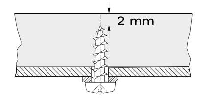 Skruene må ikke være nærmere overflaten enn 2mm, anbefalt lengde på skruer er 13-14mm. Anbefalt tykkelse på skrue er ca. 5mm.