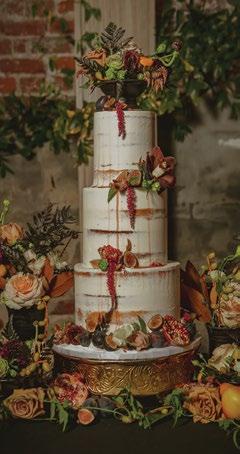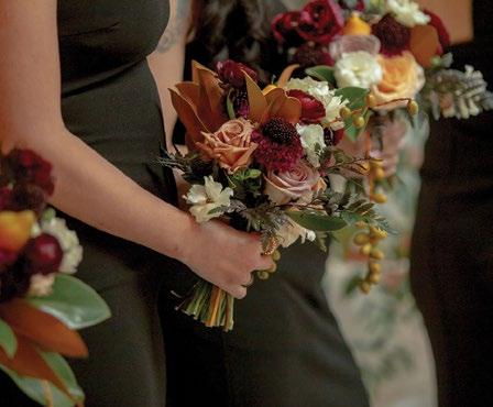 Daniella and Ronald chose rich jewel tones for their wedding colors. For the ceremony, their florist, Berry Blossom Flowers, decorated the venue’s exposed brick walls with lush greenery and lined the ceremony aisle with gold lanterns and candelabra and floral arrangements in vases handmade by Ronald who is a ceramic artist.