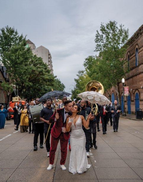After the ceremony, the newlyweds Second Lined through the Warehouse District with their guests.