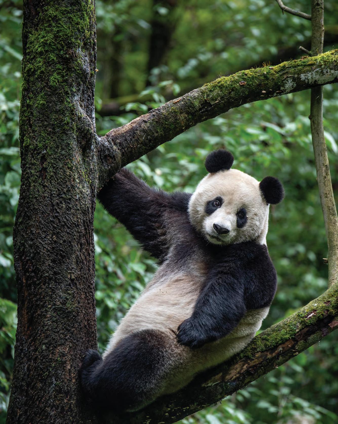 In the nature reserves of China’s Sichuan province, a giant panda finds a branch to recline upon.