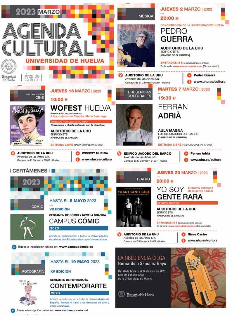 La Universidad de Huelva tiene seis obras en curso o a punto de finalizarse. Estas nuevas construcciones y remodelaciones darán una imagen nueva al campus y suponen un paso más hacia la modernización de esta universidad. Concretamente, las obras que están a punto de finalizar son: el suelo bajo la carpa en el bulevar central además de un paseo ajardinado; el Centro de Proceso de Datos (CPD) como anexo al edificio Alan Turing para alojar el Servicio de Informática y Comunicaciones; la Residencia Universitaria; la climatización y cambio de luminaria del Pabellón 3 de la Facultad de Educación, Psicología y Ciencias del Deporte; el pintado y restauración de fachada del CIQSO, y cambio de luminaria exterior con pintado de báculos de las farolas en los campus de El Carmen y La Rábida.