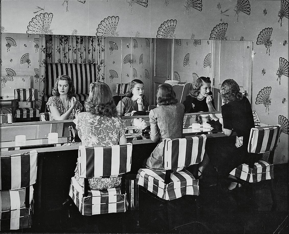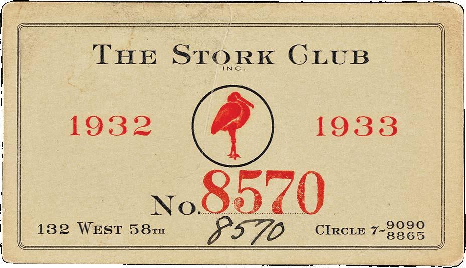 1. During its tenure from 1929 to 1965, The Stork Club was recognized as one of the most prestigious clubs in the world. A symbol of café society, aristocrats, movie stars, politicos, and showgirls regularly mixed it up in the VIP Cub Room from dusk ‘till dawn. Here Humphrey Bogart and Lauren Bacall enjoy drinks at the club in 1950; 2. Stork Club owner Sherman Billingsley pointing down, signaling nearby assistants to “bring a round of drinks”; 3. Patrons dining and dancing a rhumba to “Ecita & her Orchestra” in 1944; 4. Accompanied by his date, a sailor has his reservation checked (unescorted women were not allowed at night); 5. Female patrons in The Stork Club Powder Room, 1944; 5. Ernest Hemingway, Mary Welsh, Nancy Hawks, Spencer Tracy, George Jessel, and Leland Hayward at The Stork Club in 1950; 6. A Stork Club Membership Card; 7. Nancy and Ronald Reagan (then an actor) at the club in 1952; 8. Ernest Hemingway and Martha Gellhorn at a table in 1941.
