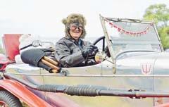 Affectionately known as Biggles, Mr Ross regularlydrivestheAlvisaroundtheBellarine and Geelong area wearing a leather helmet, goggles and scarf, with his driving companion – a white teddy bear – similarly attired in the rear dicky seat.