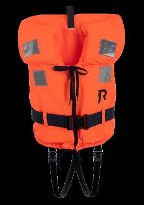 Life jackets with safety colour and reflectors. Must be able to turn a person into a position. People who cannot swim must always wear a life jacket.