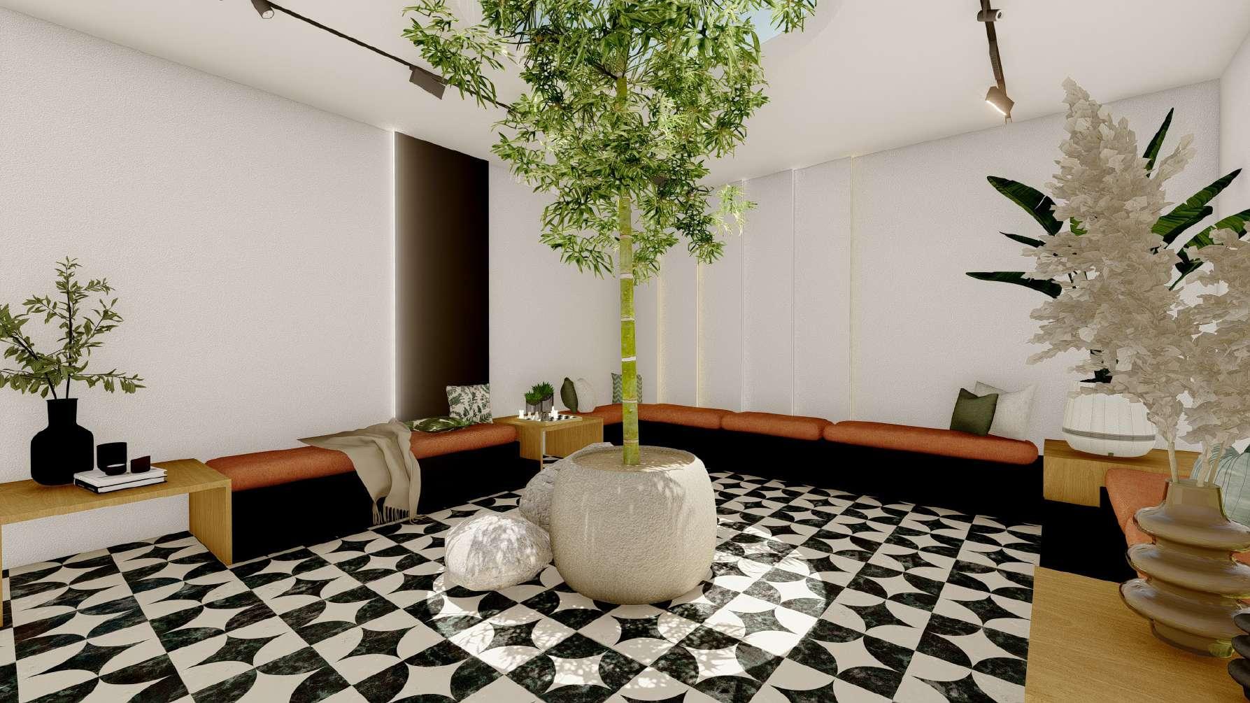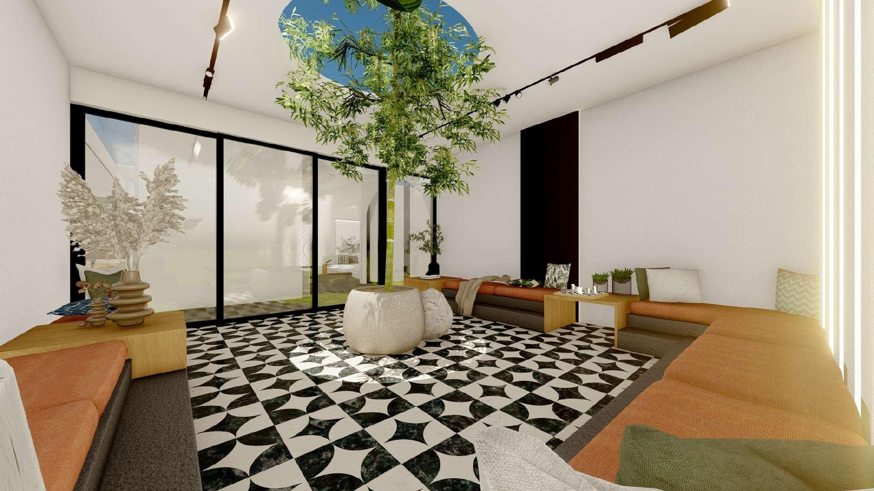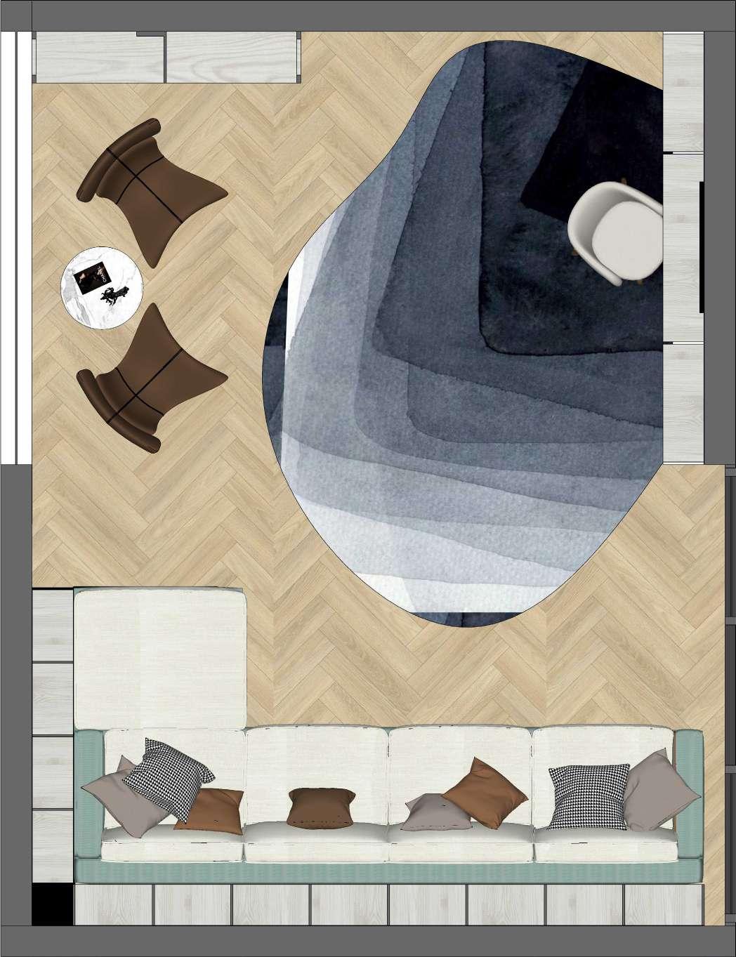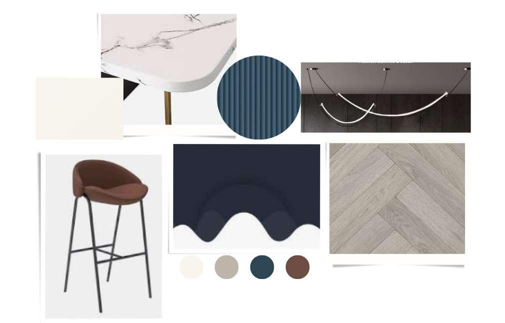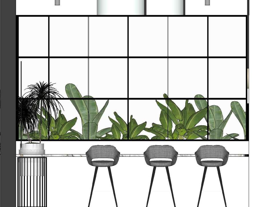 Living, dining and kitchen are interconnected with each other. The space is designed very modern and minimal, wall panels at the back of the sofa brings a subtle textures into the whole space, highlighted with free standing lamp.