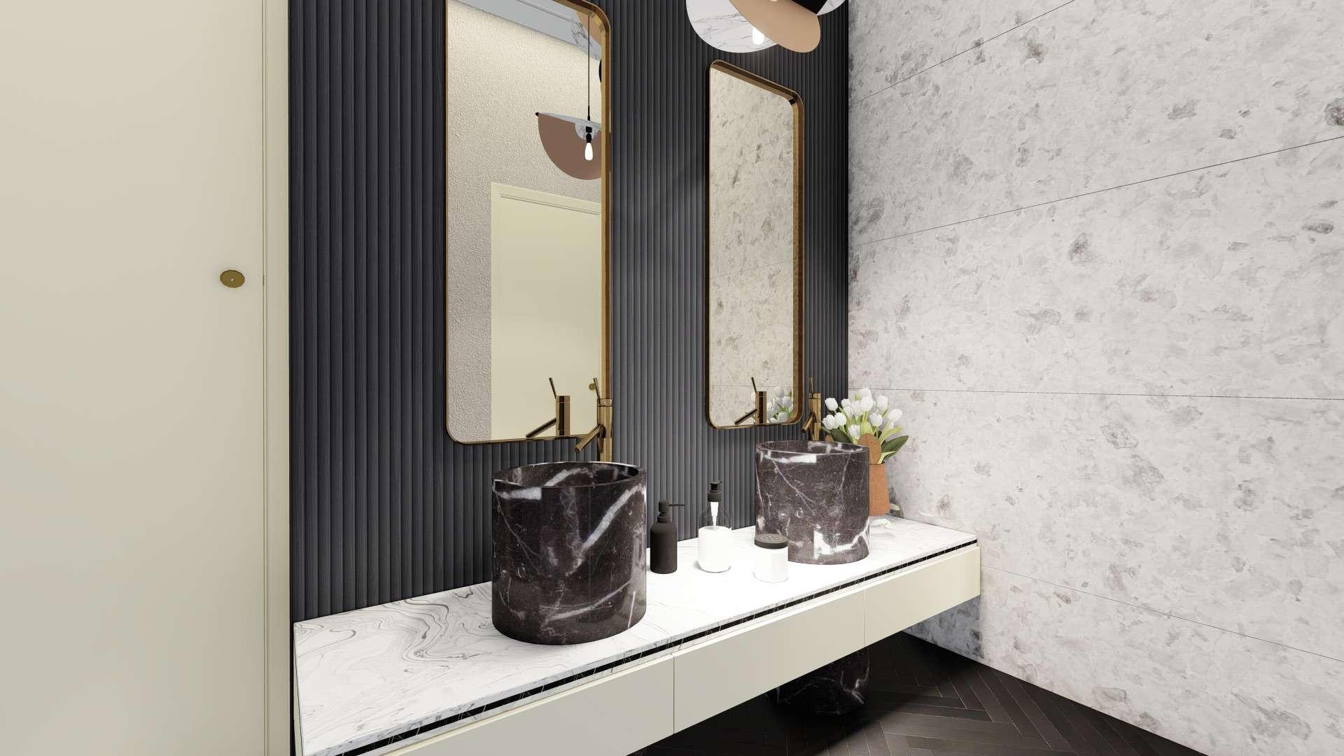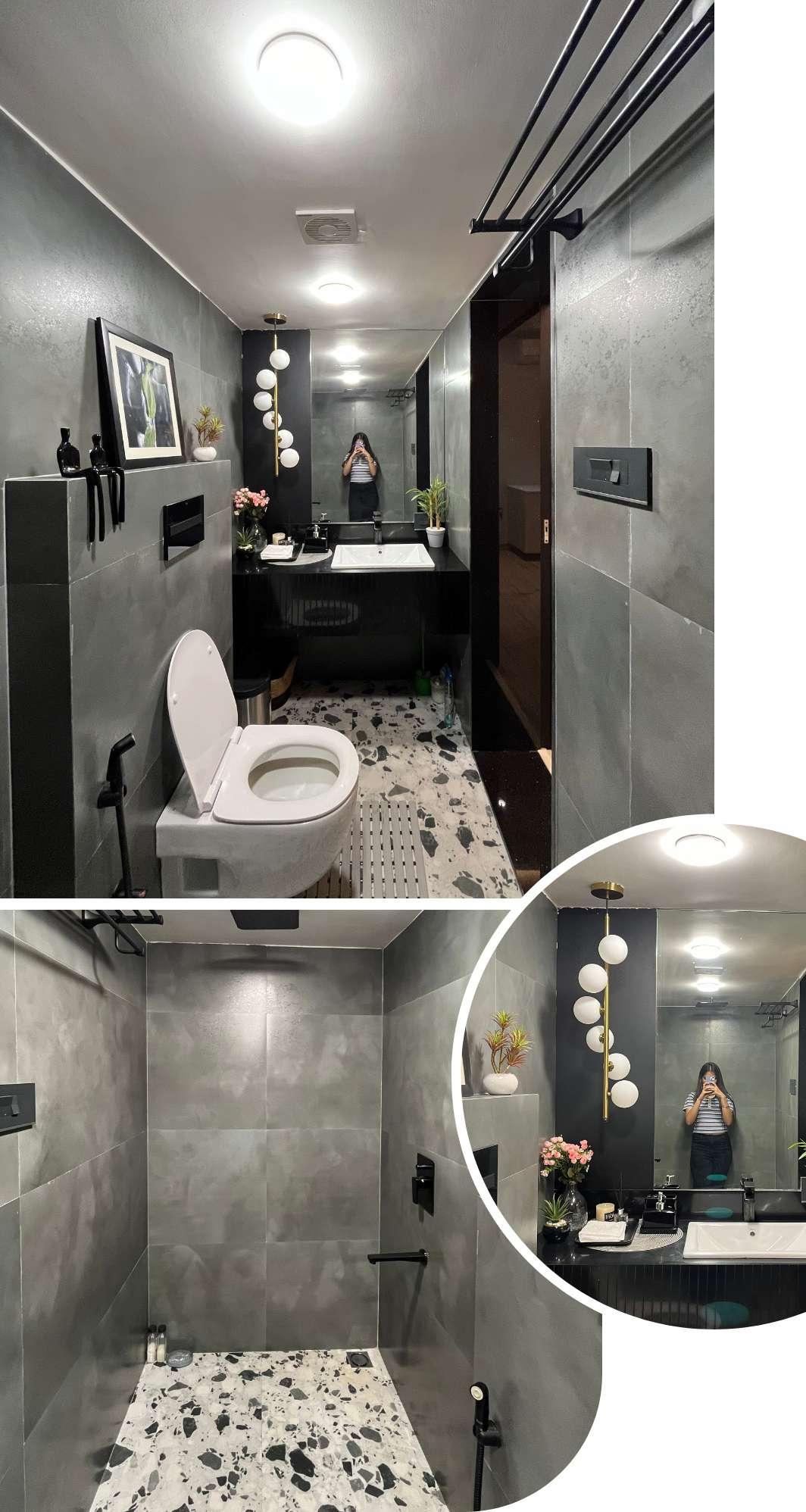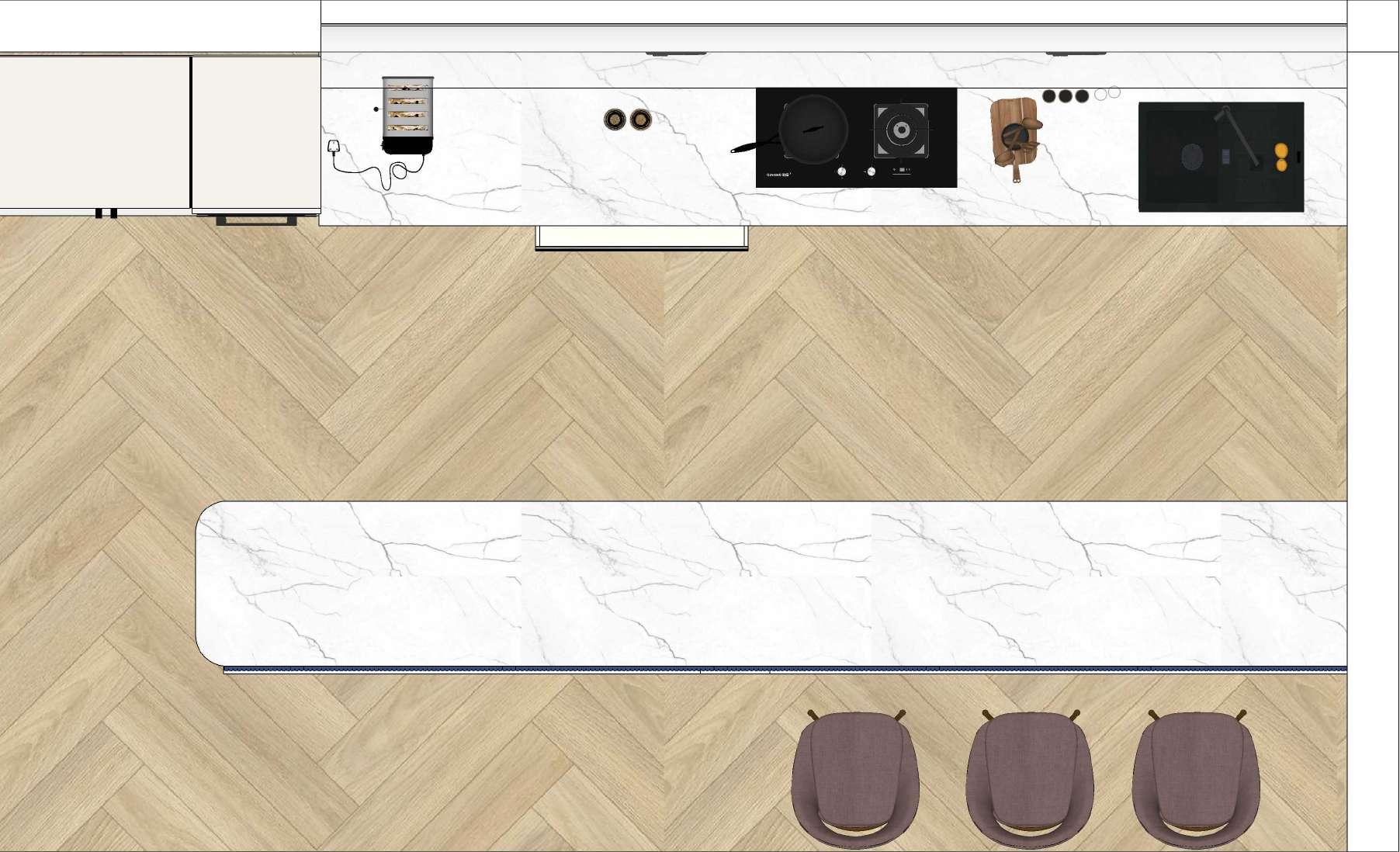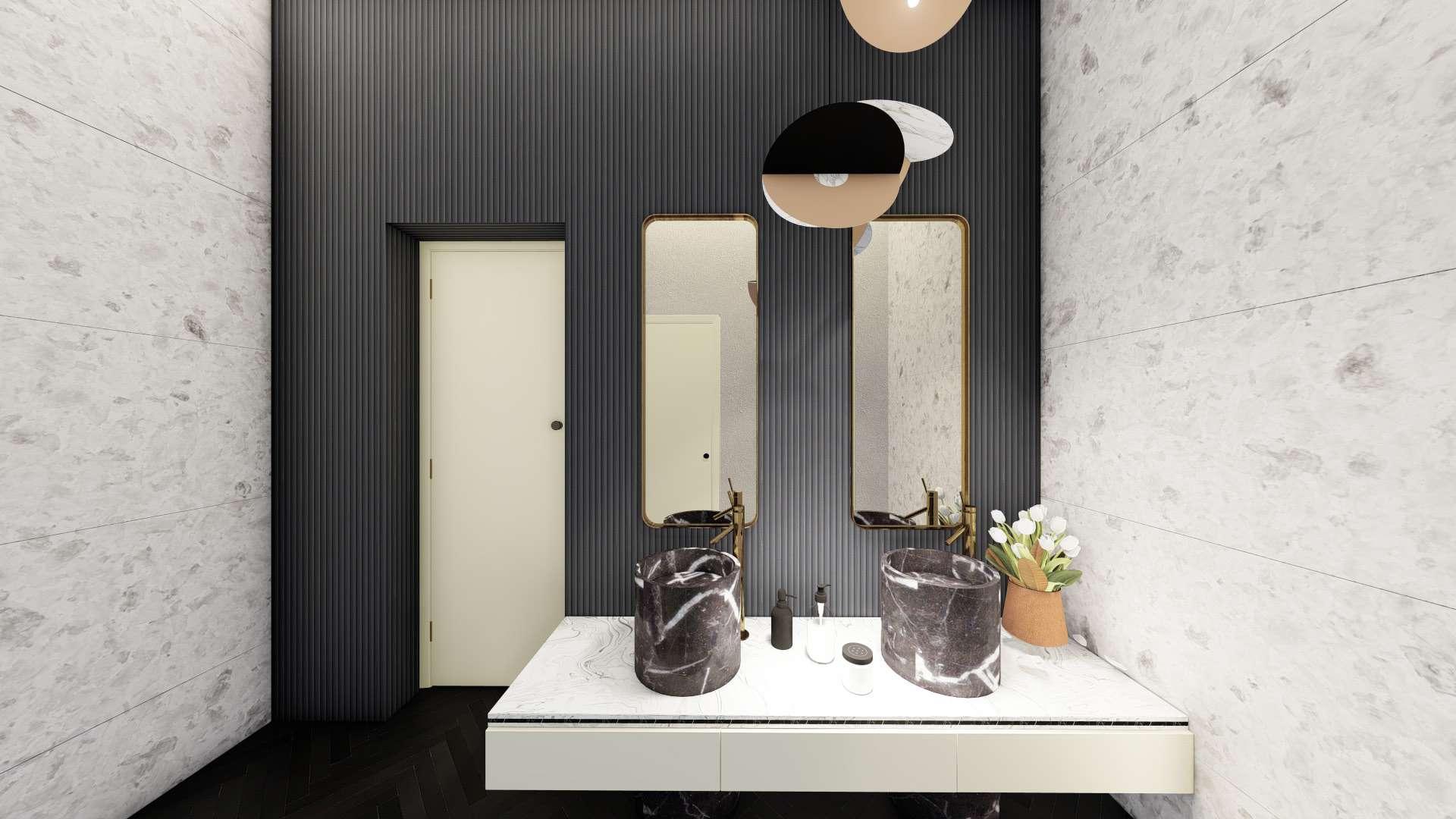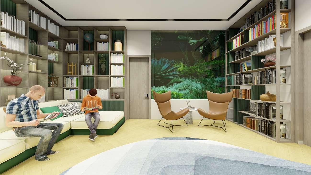 Living, dining and kitchen are interconnected with each other. The space is designed very modern and minimal, wall panels at the back of the sofa brings a subtle textures into the whole space, highlighted with free standing lamp.