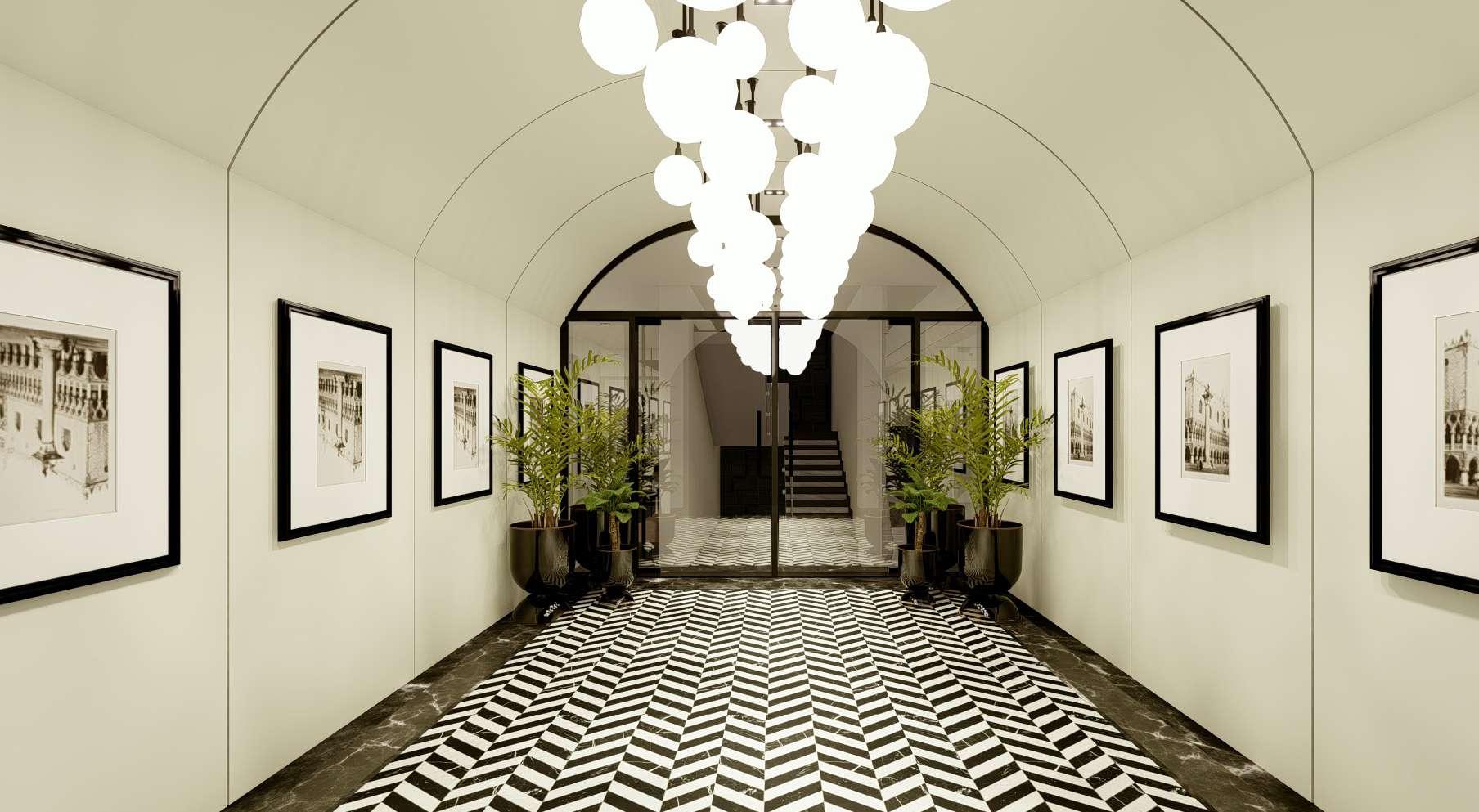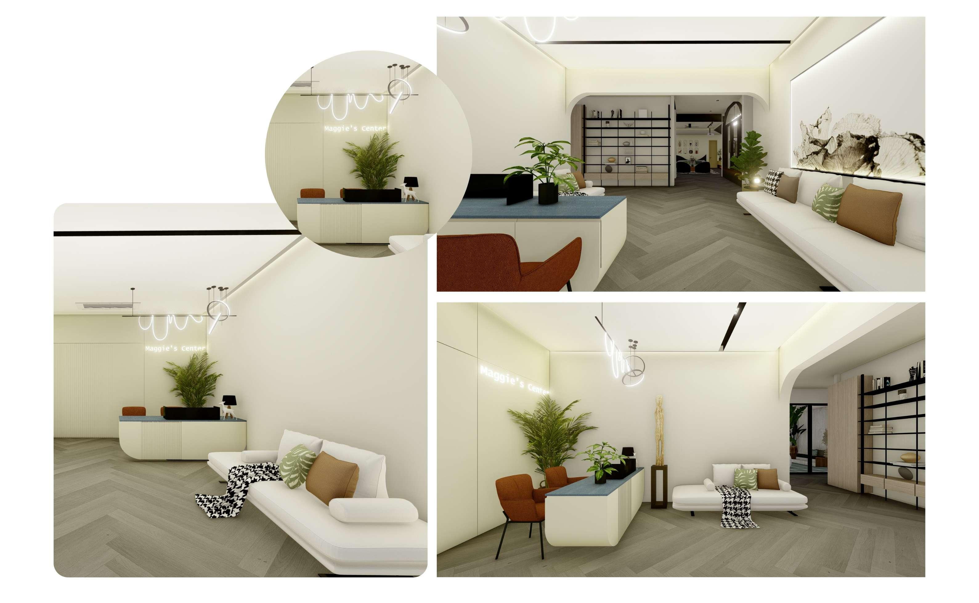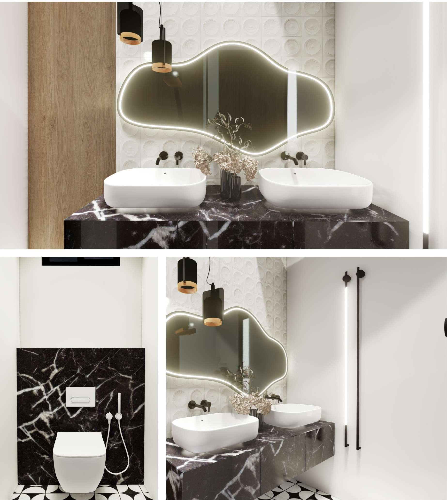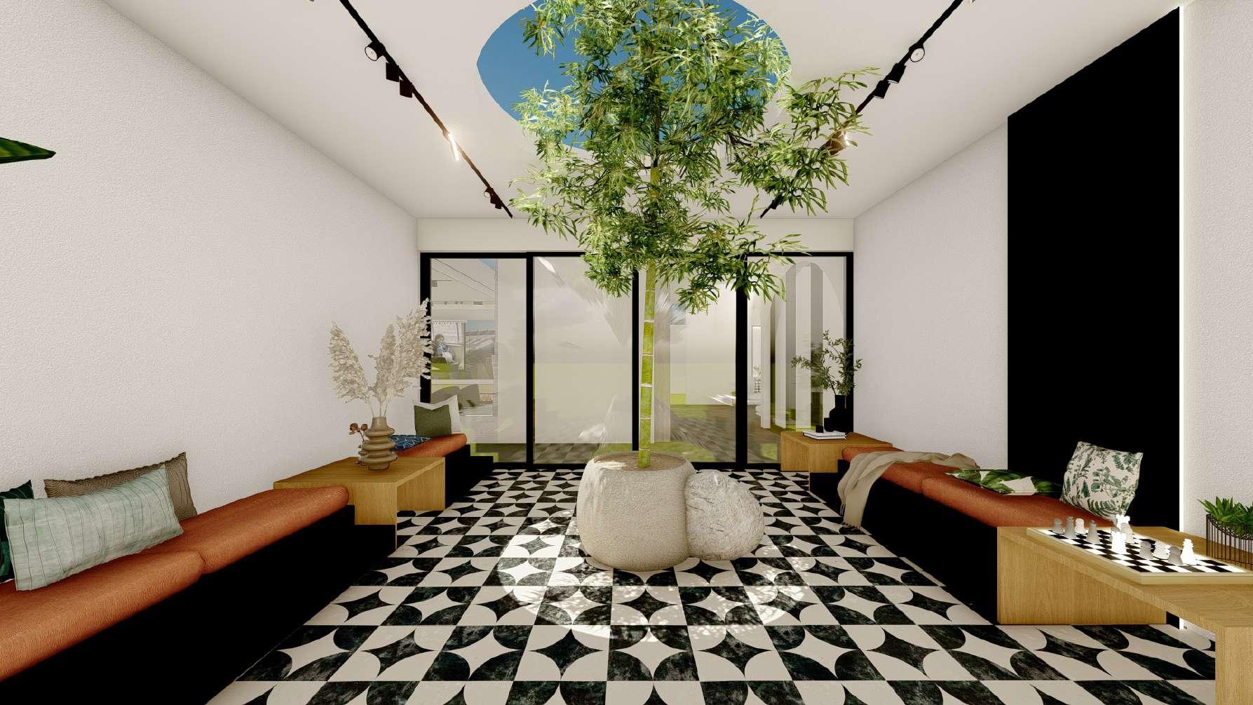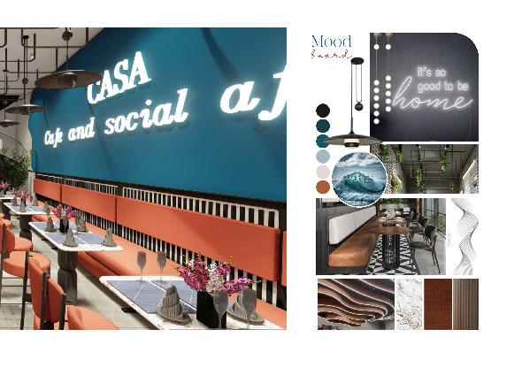 Living, dining and kitchen are interconnected with each other. The space is designed very modern and minimal, wall panels at the back of the sofa brings a subtle textures into the whole space, highlighted with free standing lamp.