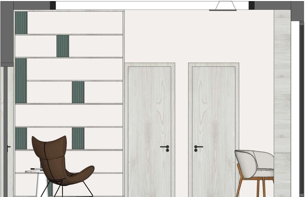 Ply Mdf Groove Panelling Size=3000mmx2482mm ,Ele-06 Qty.: 83SqFt x 1Nos Wall Mdf Panelling in Satin Paint finish with Ply Boxing support with Depth upto 30mm with Unfinished ply with 4 mm plane md sheet with satin paint finish considered