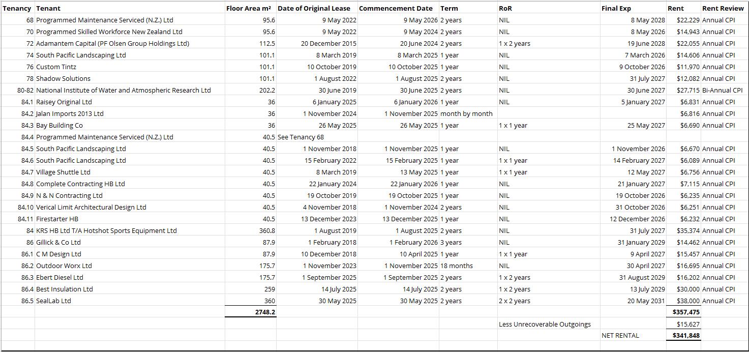 A secure online folder with all supporting documents (LIMs, NCC property files, leases, insurance information, seismic and geotech reports, and the tenancy schedule) can be assessed at the link below:-