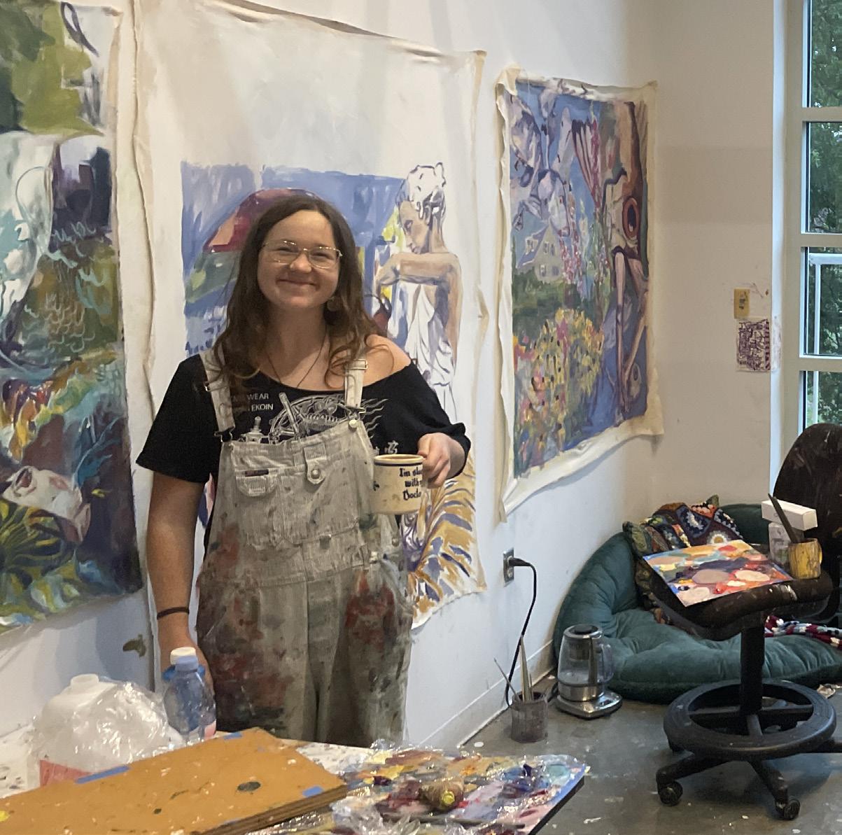 I came into the DACE on a dreary Mending Monday morning with two items of clothing I needed repaired. The studio offered a bright and calming environment for a project I had put off in favor of studying. This is exactly the vision Nelson had for the space when the studio opened in 2023. Nelson has seen the beneficial impact on student stress because of the reprieve from academics engagement in a creative project DACE provides.