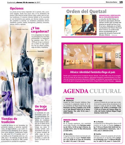 Un traje especial Tiendas de tradición Cuando las túnicas no son heredadas, los penitentes recurren a sastrerías especializadas, de larga tradición y que suelen encontrarse en los alrededores de las iglesias. Entre estas destacan, Confecciones Loyola, 5a. calle entre 12 y 13 avenida, zona 1; y La Estrella, en la 14 avenida entre 2a. y 3a. calle, zona 1. Sin embargo, el bum de estos locales llegó en la década de 1980, cuando se incrementó la cantidad de cargadores.
