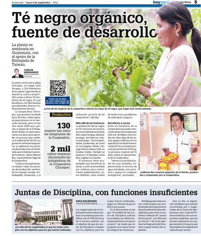 Té negro orgánico, fuente de desarrollo La planta es sembrada en Guatemala, con el apoyo de la Embajada de Taiwán. Carlos Hernández