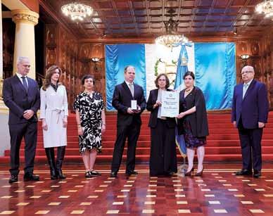 En el Palacio Nacional de la Cultura se realizó la ceremonia de condecoración póstuma con la Orden del Quetzal en grado de Comendador para el doctor Alfredo Hugo MacKenney Fleischmann. En el acto o cial estaban presentes autoridades del Ministerio de Cultura y Deportes, Ministerio de Relaciones Exteriores, Cuerpo Diplomático y familiares del homenajeado. Emocionada, la ministra de Cultura y Deportes, Liwy Grazioso, dedicó unas palabras: “Muchos nos consideramos sus discípulos porque fue como una figura paterna para guiarnos”. Agregó que difundió documentos con la riqueza cultural de Guatemala y de su compromiso con los volcanes. “Para mí era un hombre admirable, un explorador incansable y con ideas novedosas”, manifestó.