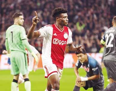 Otra joven promesa que apu ra etapas con mucha rapidez es el ghanés Mohammed Kudus, delan tero del Ajax de Ámsterdam que es tá destacando en los primeros parti dos de la Liga de Campeones.