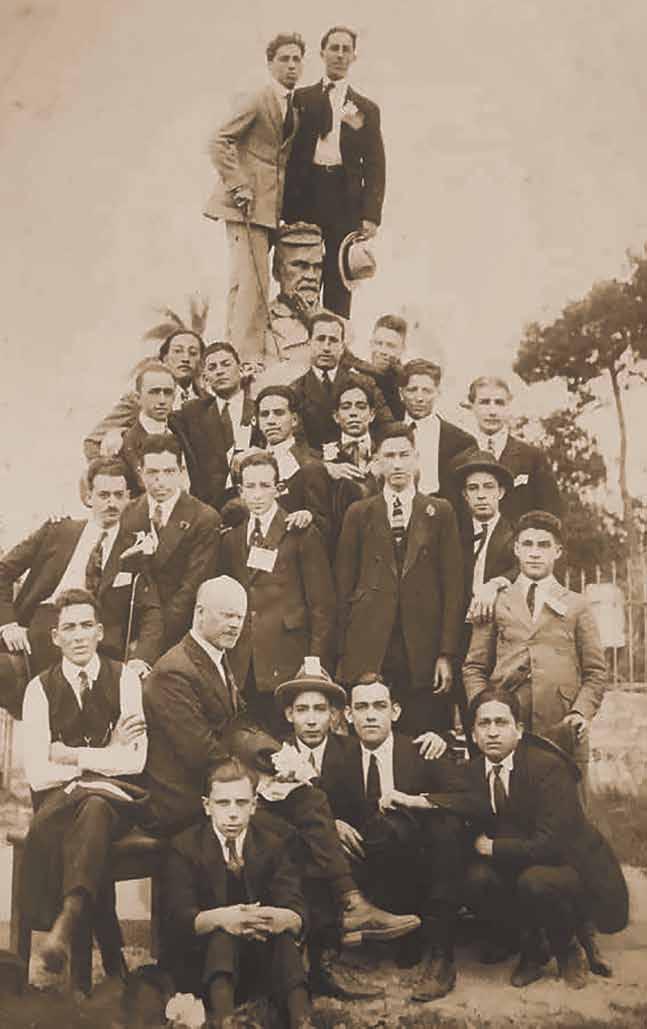 En 1921, quien ya era conocido como Moyas, participó en la fundación de la Asociación de Estudiantes Universitarios (AEU), por lo que viajó a México como delegado al Primer Congreso Internacional de Estudiantes. Ese mismo año, junto a un grupo de universitarios, entre ellos Alfredo Valle Calvo, José Luis Barcárcel y David Vela, integró la comisión que dio vida al canto de guerra de todo sancarlista hasta el sol de hoy: La Chalana.