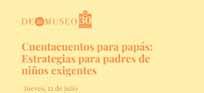 Cuentacuentos para papás: estratégias para padres de niños exigentes Impartido por José Antonio Pérez Robleda, en De Museo, Majadas Once, segundo nivel. Valor del evento, 199 quetzales.