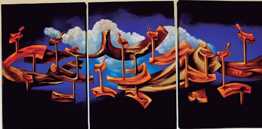 Una serie de pinturas se instaló en los tres niveles de la Galería Eloy Amado Herrera de la Universidad Popular (UP), que integran la exposición Metáforas, del artista guatemalteco Byron Rodas.