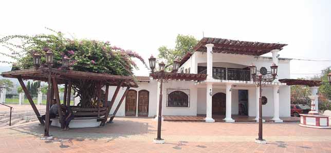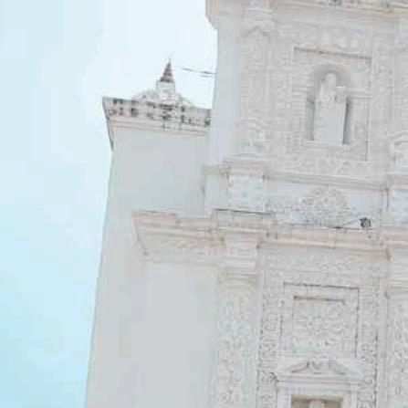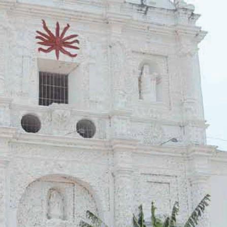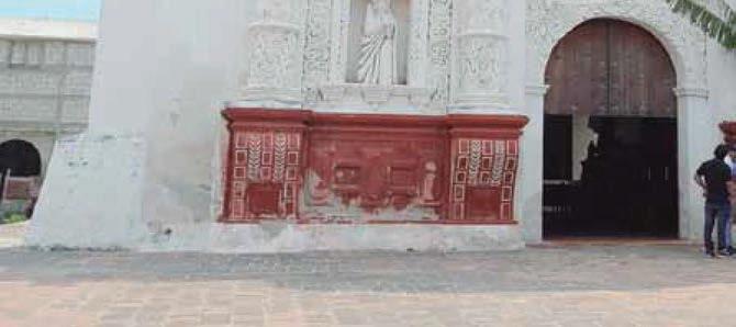 Las temperaturas altas forman parte del clima de esa región y debido a eso en la fachada blanca del templo colonial se observa en relieve, y pintado de rojo, un sol en medio de formas barrocas.