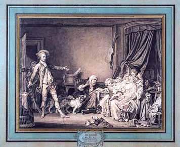 Esta obra muestra a un grupo de pequeños niños abalanzados sobre su madre, al momento en que su padre entra al recinto rifle en mano, volviendo de la cacería. Una marca del autor en sus inicios era que pintaba escenas de la vida familiar tradicional, donde la mujer se quedaba en casa para seguir su rol de esposa y progenitora. La técnica es óleo sobre lienzo.