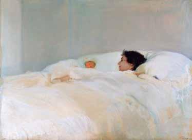 Este lienzo, que cumplirá 129 años, fue realizado en honor del nacimiento de la hija menor del artista, Elena. Es un óleo en el que “entre el deleite del sueño y el agotamiento, madre e hija descansan, la una vuelta hacia la otra, envueltas en un mar de blancos del que solo sobresalen la pequeña cabeza sonrosada de la recién nacida y la de la madre de una sutil lividez”, menciona el Ministerio de Cultura del Gobierno Español en su página web. La obra se exhibe en el Museo Sorolla.