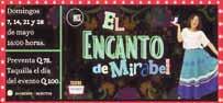 La obra de teatro El encanto de Mirabel se presenta en el Teatro Thriambos ubicado en el centro comercial Unicentro, zona 10, segundo nivel, a partir de las 16:00 horas. Admisión, Q75 preventa y el día del evento Q100. Boletos, al WhatsApp 54185304 o en taquilla el día del evento. Parqueo Gratis.
