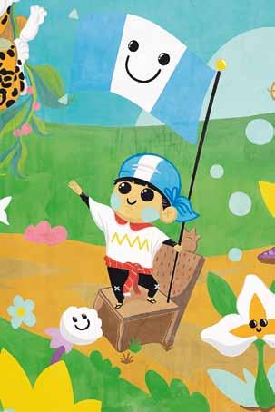 un lado un par de cachorros de jaguar; también se encuentra Atanasio Tzul, sobre su silla, sosteniendo una bandera, lo cual da importancia a los símbolos patrios. Si bien el mural va dirigido a niños, es una pieza que fácilmente puede inspirar al adulto que la vea. El objetivo de esta es que quien la aprecia, pueda sentir el mensaje de inocencia, abrir su mente y pensar en un futuro mejor.