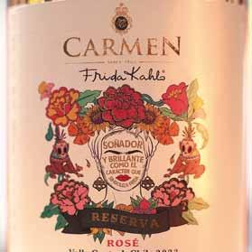 • Carmen Reserva Frida Kahlo Rosé: cuenta con aroma similar al de la frambuesa. Es un buen acompañante para pescados y mariscos, aperitivos y ensaladas. Se recomienda servir entre 9-10°C.