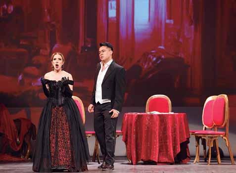 Pedro Pablo Solís interpreta a Alfredo. Karin Rademann interpreta a Violetta.