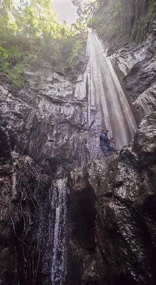 El lugar cuenta con una cascada de 42 metros de altura, en donde se puede practicar únicamente los domingos, rappel y rappel australiano, con un costo de Q350 por persona. Esta actividad también se puede realizar por la noche, donde la majestuosidad de la cascada aumenta cuando es iluminada con luz artificial por un costo de Q400.