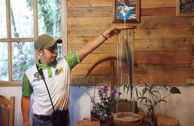 En este destino turístico se pueden ver más de 150 especies de aves, cuenta con un restaurante en el entorno natural, en el que se sirve con gastronomía guatemalteca.