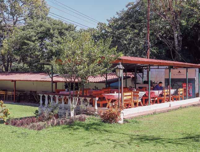 La gastronomía nacional se degusta en un restaurante rodeado de naturaleza.