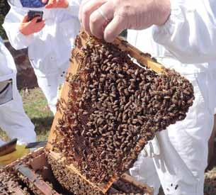 Durante un recorrido guiado por apicultores de Guatebee, se explicó sobre cómo las abejas efectúan el proceso de recolección del néctar de las flores que visitan, para luego almacenarlo en los panales, en donde se inicia la transformación a miel, y en los cuales el extracto es reducido en un 70 a 17 por ciento de agua, luego de que recolectoras lo deshidraten.