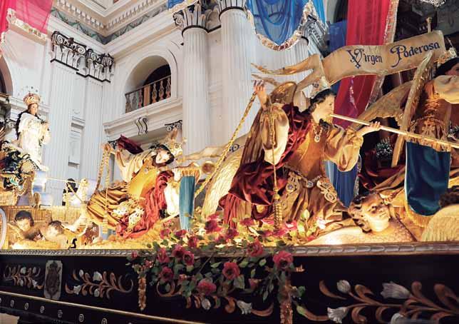 En la religión Católica, como en mu chas otras, la simbología juega un papel importante en los diferentes ritos que realizan, y en Guatemala no solamente para la Semana Mayor se observan cortejos que cuentan con muchos años de devoción, sino durante todo el año existen celebraciones como, por ejem plo, en diciembre que se festeja el Dogma de la Inmaculada Concepción de María.