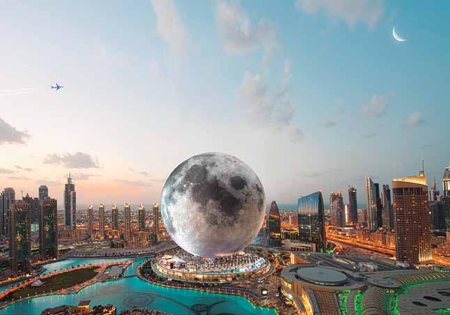 Dubái, una de las ciu dades más cosmo politas del mundo donde conviven 3 millo nes de personas de casi 200 nacionalidades y se asientan el Burj Khalifa, el edificio más alto del mundo, y otras edifica ciones con una arquitec tura espectacular, podría añadir un nuevo hito a su horizonte urbano, con un hotel que tendrá el aspecto de una gigantesca Luna.