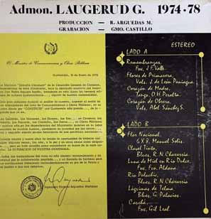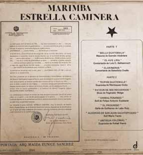 Durante la administración de esa época, se hicieron dos grabaciones de marimba como homenaje a lo acontecido; el disco I se dividió en dos partes. En la parte I fueron grabadas obras de autores nacionales: Bella Guatemala, de Germán Alcántara; El Ave Lira, de Luis Bethancourt y Clarineros, de Benedicto Ovalle.
