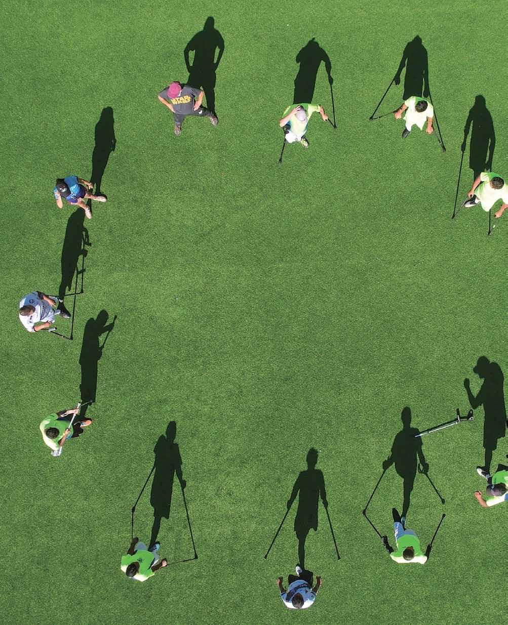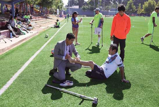 silbato anuncia el inicio del entrenamiento y las muletas comienzan a escucharse en la grama sintética. El equipo cuenta con 20 jugadores de los cuales 18 perdieron sus extremidades por un accidente de tránsito. Las personas que pierden una extremidad superior pueden ser porteros. “Volví a vivir, volví a nacer”, dice Karla Castellanos, guardameta titular y capitana del equipo, al terminar el entreno. Ella perdió su brazo derecho tras un accidente en motocicleta.