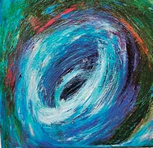 Los hoyos negros siempre se han simbolizado de negro, aseveró Ruiz; sin embargo, él lo pintó de otra tonalidad para convertirlo en un hoyo azul espacial.