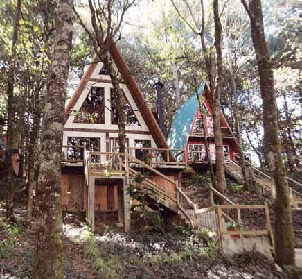 Descanso rodeado de naturaleza Para pasar una noche agradable, en familia o con la pareja, tienen a disposición varias al ternativas como, por ejemplo, las que incluyen chimenea, jacuzzi privado, cocineta con ca fetera y microondas y algunas comodidades extra. Las hay de 1 y 2 pisos. Los precios por noche oscilan entre Q750 (para 2 personas) hasta Q2100 (para 7 personas).