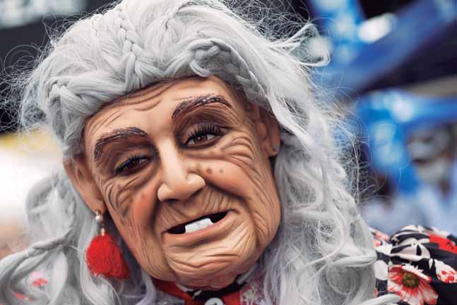 Los integrantes de esta agrupación, con ves timenta característica, se disfrazan de abueli tas, se colocan máscaras, pelucas blancas o grises, utilizan bastones, y frente a la mirada de varias personas en actividades públicas, bailan al son de la marimba, usando coreo grafías únicas que hacen reír y disfrutar de un momento agradable a su público.