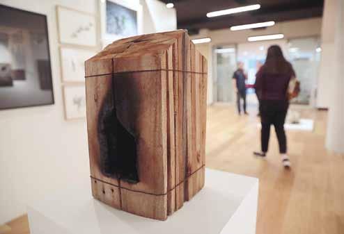 González elaboró una casa con madera que formó y luego quemó. “Mi trabajo es el resultado de la pandemia, del encierro que causó muchas emociones y conflictos que brotaron durante esa época. Y la ventana significa esperanza”, indicó.
