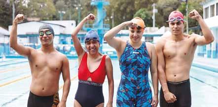 w Natación: Octavio Lone, Maryorie Cienfuegos, Odir Enríquez y Ana María Martínez, entrenados por Karla Bonilla.