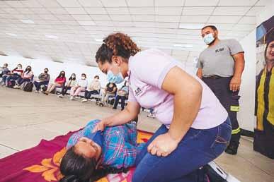 “La capacitación abordó los principios básicos al momento de atender a una persona con posi bles traumatismos, desmayos, as fixia y otras situaciones que pue