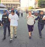 Policías de la Comisaría 14 capturan a Katerin Méndez y Kevin Cristóbal, alias la Canche y Seko, respectivamente, señalados de asaltar en paradas de la calzada Roosevelt. La detención ocurre en la zona 11, tras una denuncia ciudadana. Con una navaja amenazan a dos víctimas para robarles un celular, joyas, dinero y documentos. Una patrulla atiende el auxilio y logra la aprehensión. Ambos ya eran investigados por la Policía Nacional Civil (PNC) y quedan a disposición de juez. • Kiara De León