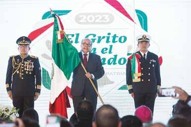 La jornada conmemorativa concluyó en la Plaza de la Constitución con la arriada de la bandera, en la cual destacó el sonido de La Granadera.