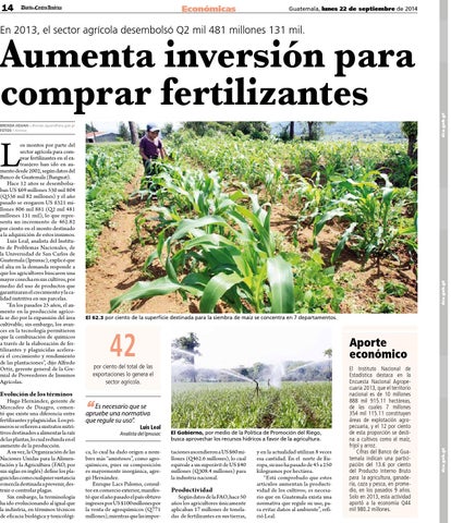 Aumenta inversión para comprar fertilizantes Brenda Jiguan Brenda.Jiguan@dca.gob.gt fotos Archivo
