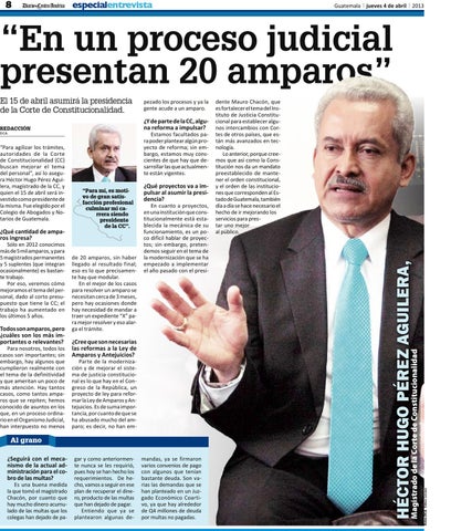 “Para agilizar los trámites, autoridades de la Corte de Constitucionalidad (CC) buscan mejorar el tema del personal”, así lo asegura Héctor Hugo Pérez Aguilera, magistrado de la CC, y quien el 15 de abril será investido como presidente de la misma. Fue elegido por el Colegio de Abogados y Notarios de Guatemala.