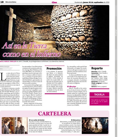 Promoción A las primeras 10 personas que llamen a la redacción del Diario de Centro América al teléfono 2414-9650, de las 8:00 a 10:00, entrarán al sorteo de un pase doble, válido para las funciones que se ofrecerán del 29 de septiembre al 1 de octubre en las salas de Cinépolis. Para recoger los pases, deberán presentar el ejemplar de hoy de Diario de Centro América.