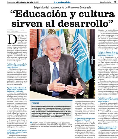 esde hace 13 años, la Unesco ha tenido presencia en el país contribuyendo en la construcción de una Guatemala plural, diversa y en paz, por medio de la educación, la cultura, la ciencia y la comunicación. El peruano Édgar Montiel ha sido director de la institución desde 2009, cargo que dejará el próximo 31 de julio. Antes de su retiro, conversa de temas en los que la entidad se ha ocupado durante los cuatro años de su gestión.