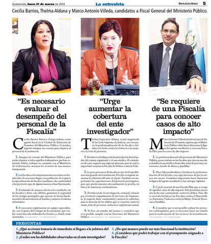 3. Con la creación de una Fiscalía Élite que se ocupe de aquellos casos de alto impacto. Esto permitirá ejercer una lucha más contundente contra los delitos. Para ello se necesita fortalecer las Fiscalías contra el Narcotráfico, Extorsión, Violencia contra la Mujer, Trata de Personas y Pandillas. 4. Considero que sí será posible realizar los proyectos contemplados, pero es necesario hacer un estudio para la readecuación de los recursos de la institución. Sara Solórzano