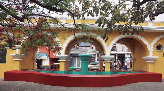 Tiene seis lavaderos y los usuarios observan el espacio abierto del parque y el templo al fondo. Al centro se localiza el tanque colector, con un grifo de abastecimiento y una copa que le da una doble función como fuente. Estructuralmente estable, hallaron pocos daños, a diferencia del resto, a la que se integró un sistema de losa española y otras reparaciones.